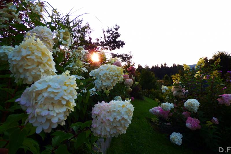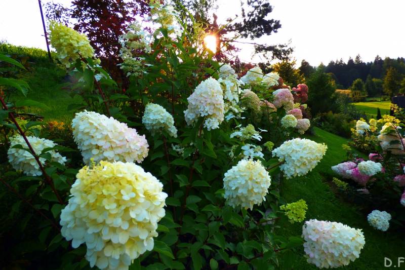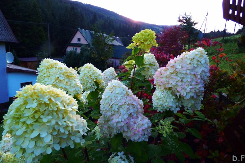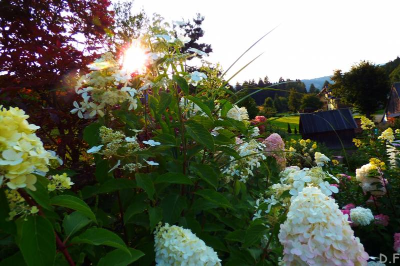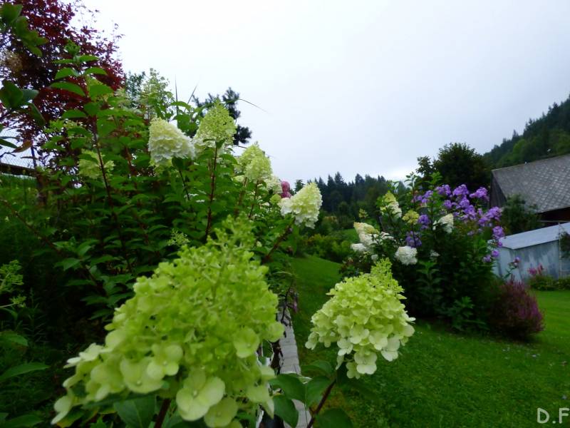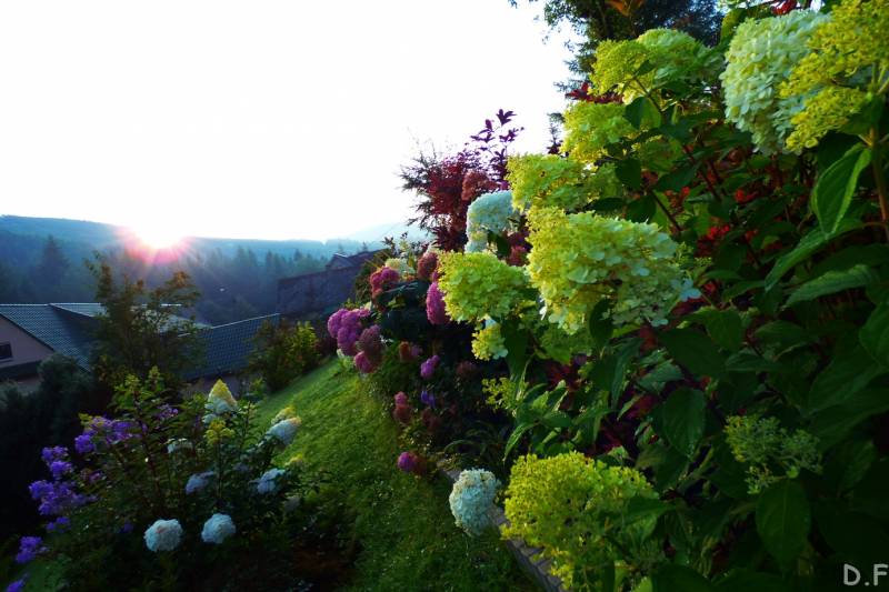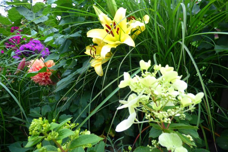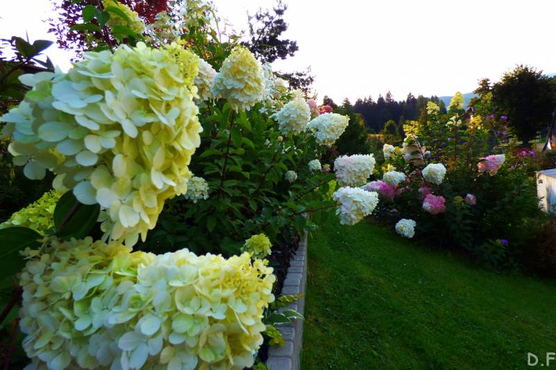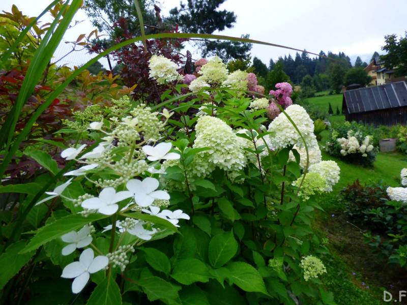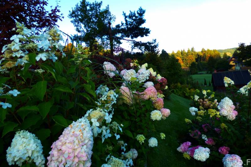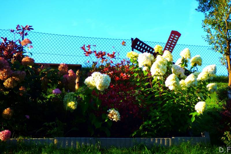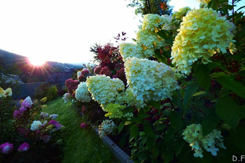 Teraz ogród jakby odżył,ilości wody które go podlały powinny na skarpie wystarczyć do jesieni,bo to stok północny,hortensje bukietowe się wreszcie rozwinęły