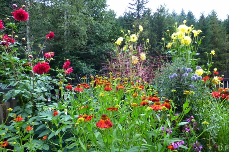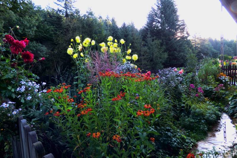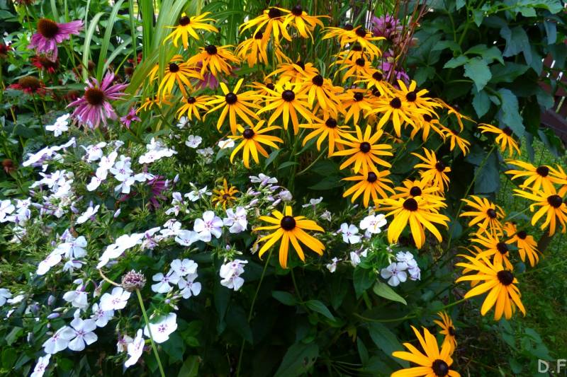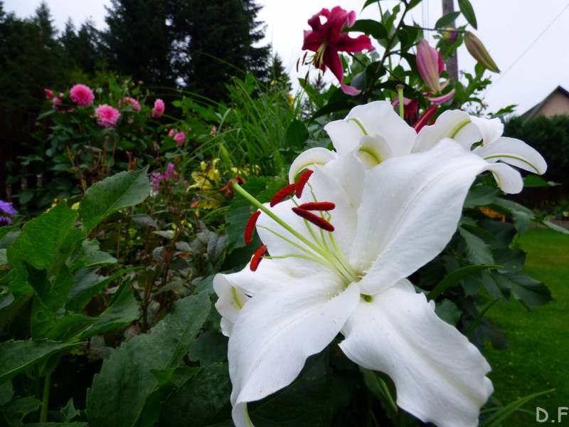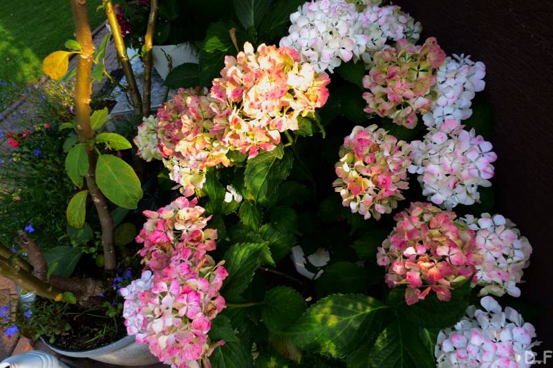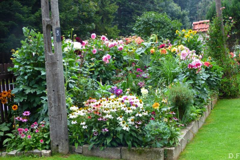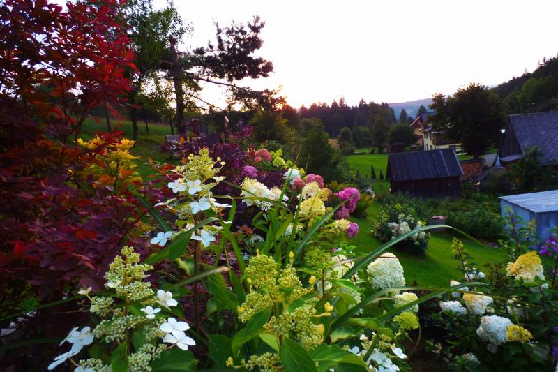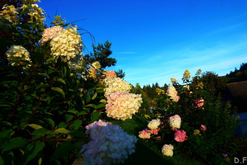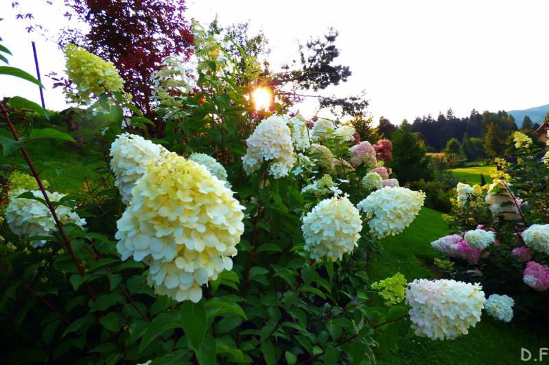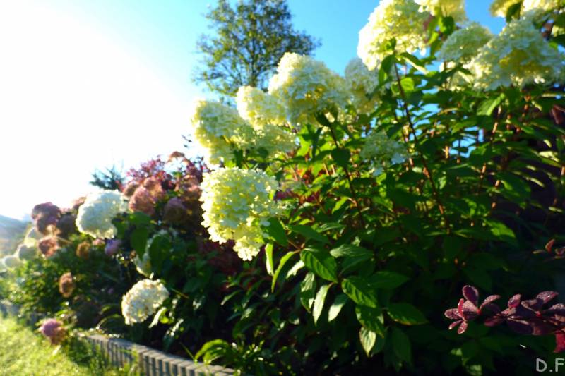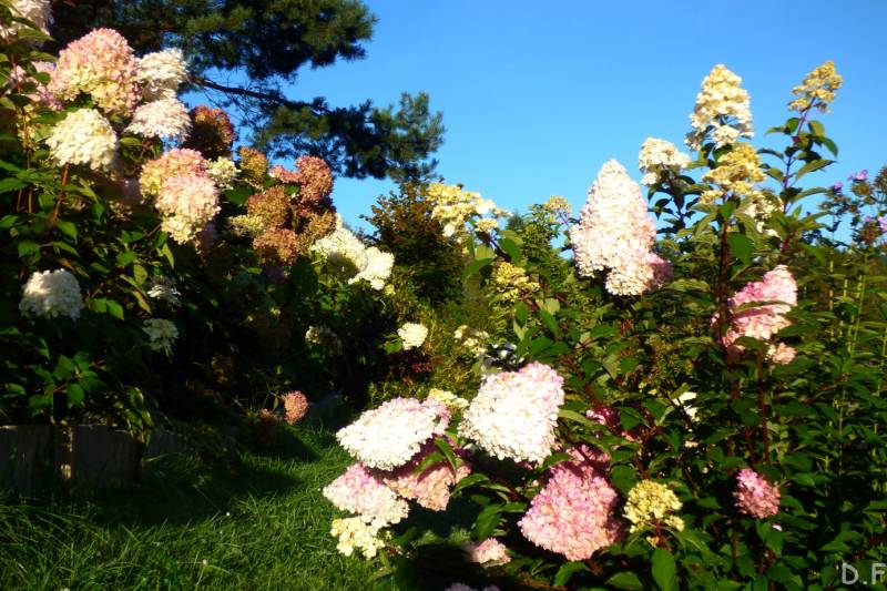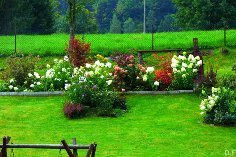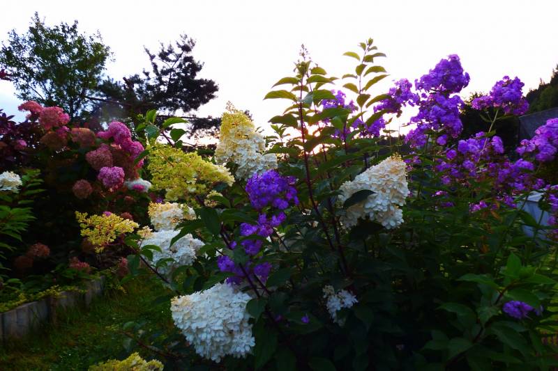 Teraz ogród jakby odżył,ilości wody które go podlały powinny na skarpie wystarczyć do jesieni,bo to stok północny,hortensje bukietowe się wreszcie rozwinęły
