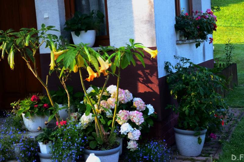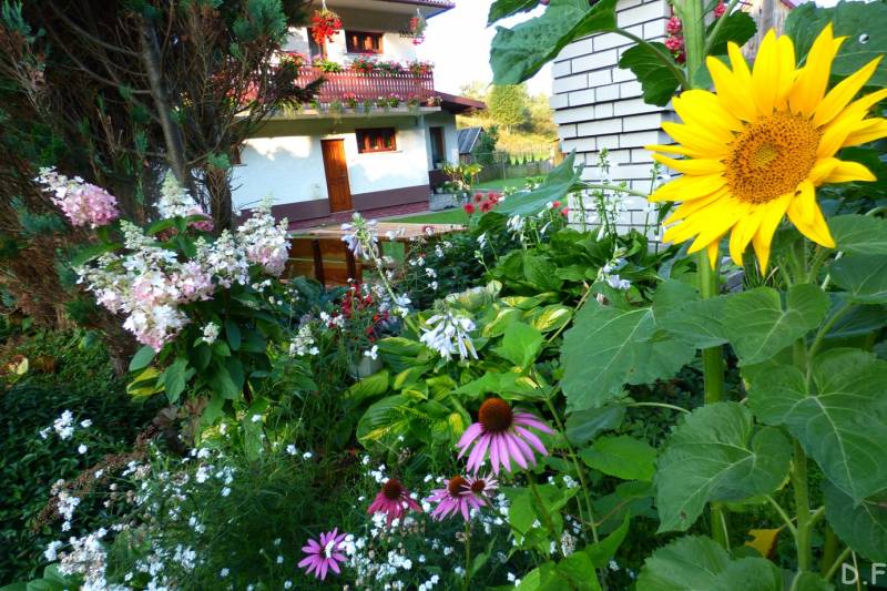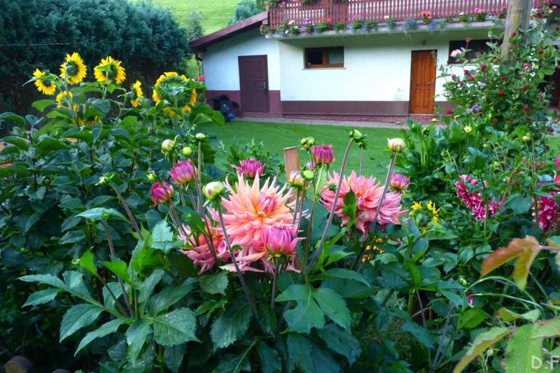 i synami na płaski teren w południe bo z rana przyjechali na kilka godzin goście z Czech brat taty i jego synowie.Dowiedziałam się że mam piękny ogród