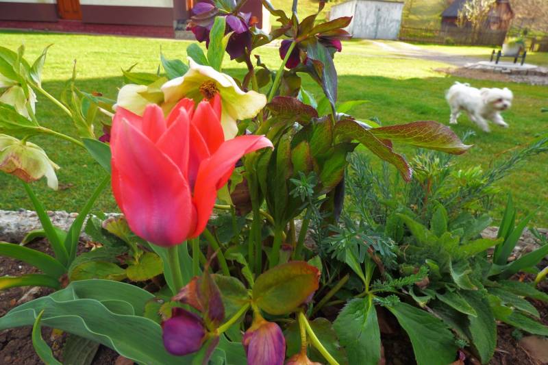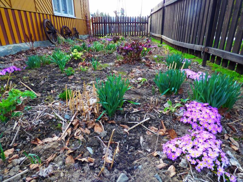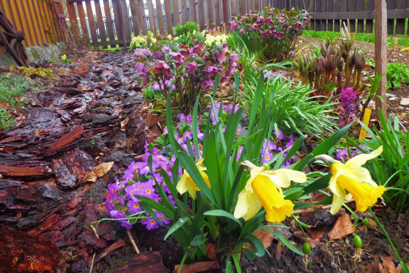wypieliłam kilka rabat,ale w ziemi bardzo mokro,rośliny na skarpie zarosły taką cienką trawą ciężka ją wytępić musiałam kilka roślinek wykopać aby te miejsca odchwaścić i odnowić.