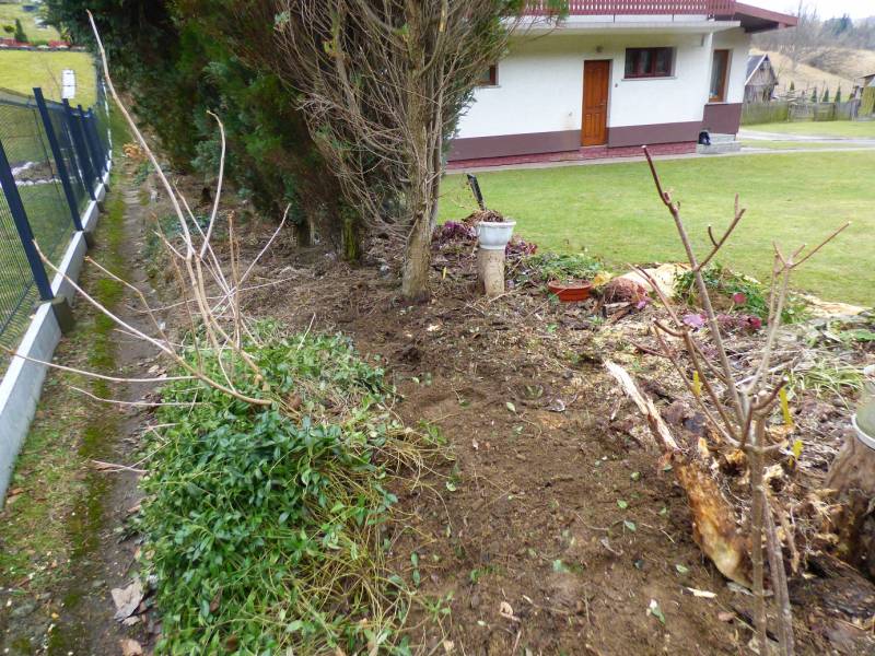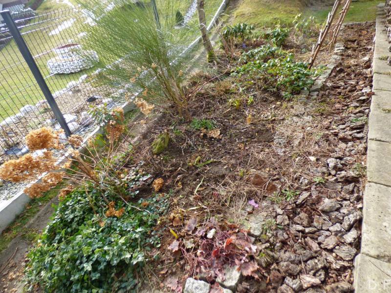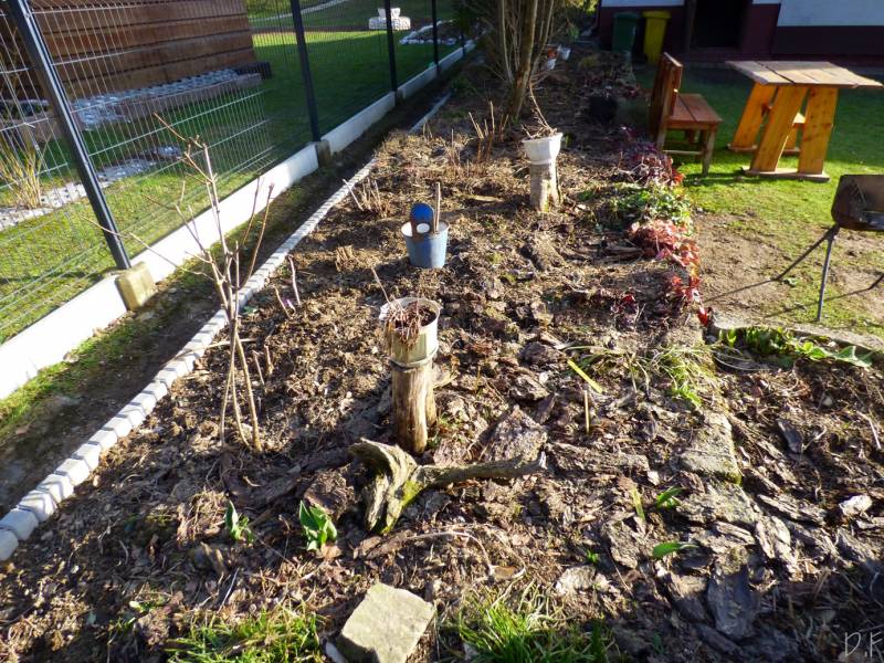 Ogród w połowie przygotowany do wiosny,roślinki przycięte ,rabaty posprzątane zostało mi skarpę z mchu wygrabić.