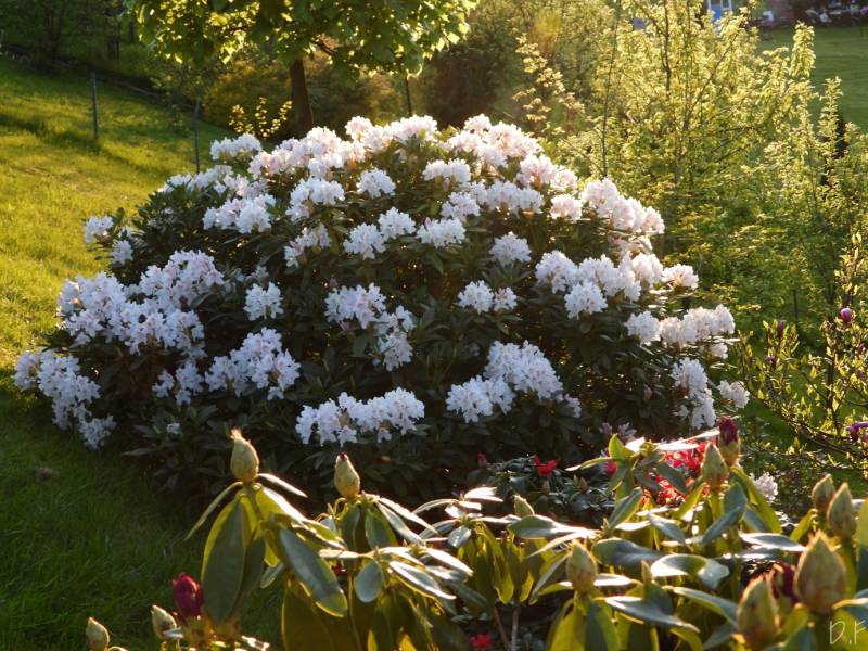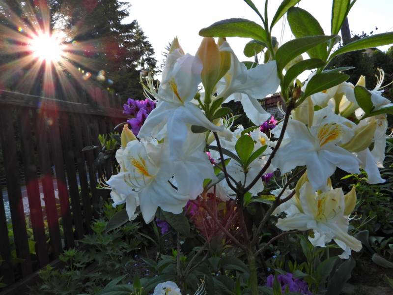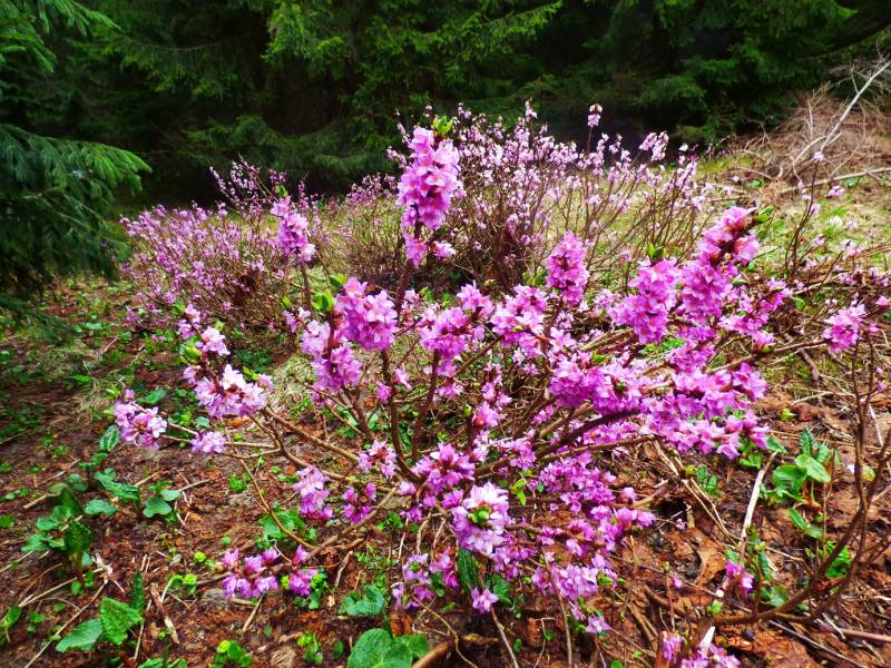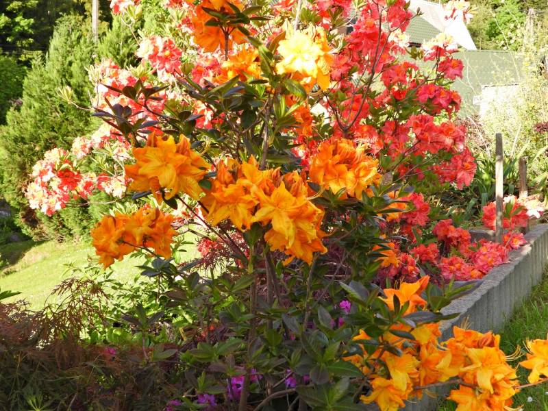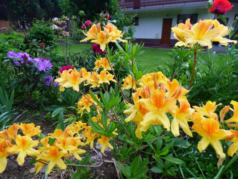 Azalie wszystkie wypuściły pierwsze liście a potem kwiaty