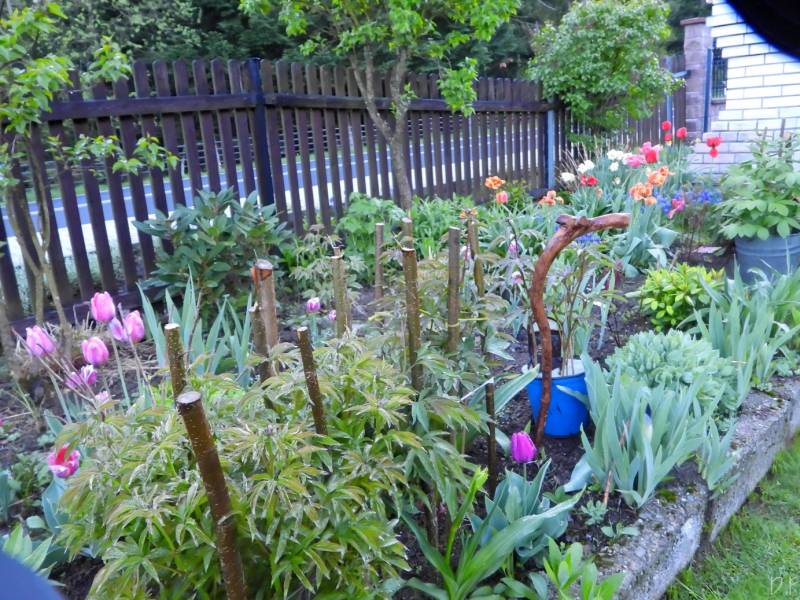Dzisiaj wypieliłam w marchewce i burakach po mimo że małe jarzynki to już je przerwałam. Ziemniaczki przykryły ziemię ,azalie i piwonie rozpoczęły kwitnienie