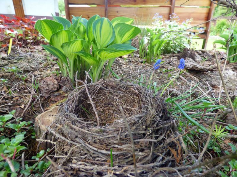 .Gniazdko kosa miał sie w tujach a gdy dzieci się rozleciały to syn mi zdjął i włożył między hosty. Strasznie nie dbamy o przyrodę ja jestem zawiedziona tym jak ludzie śmiecą i niszczą wszystko.