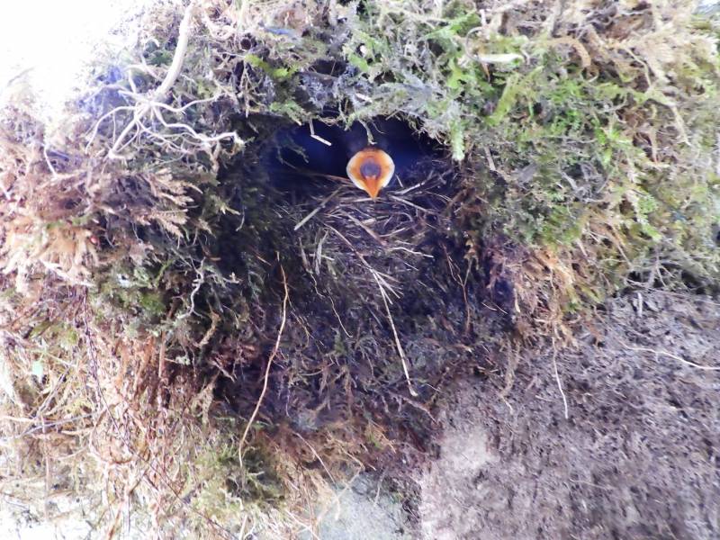 Gniazdo jest całe zrobione z mchu i ma wejście przez otwór, jak gniazdo np wikłaczy.