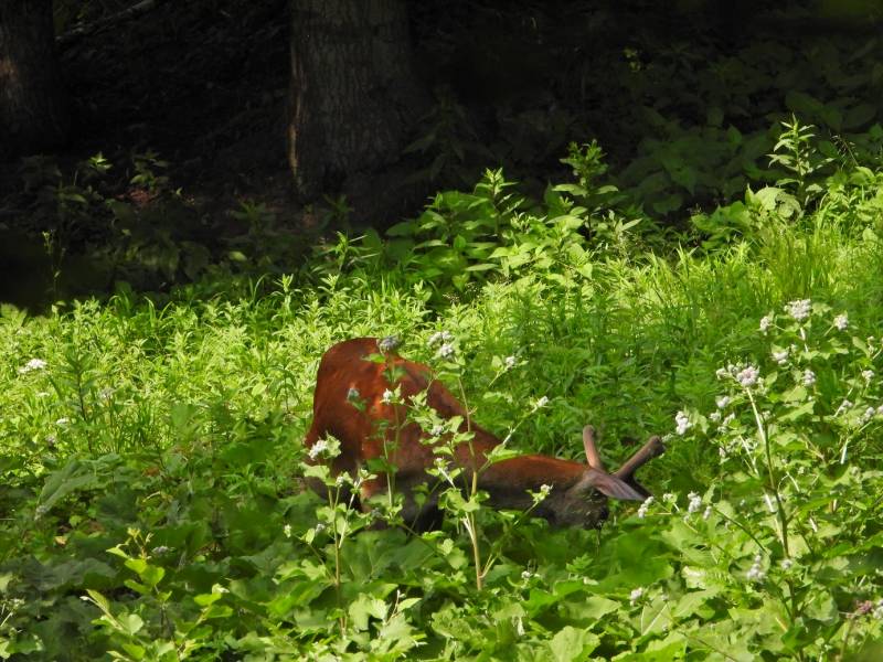 Jadac ostatnio na rowerach spotkałam jelenia pasącego się przy potoku miałam