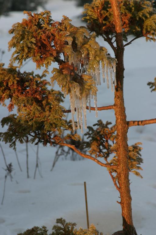 Dziś mimo że wczorajszy śnieg nie zdążył zniknąć do końca, żona zrobiła rekonesans po ogrodzie licząc straty w roślinności.