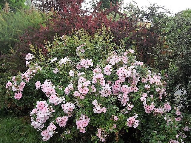 Mamy bardzo mało ślimaków i tylko te skorupkowe, wiosną jak robimy porządki to zbieramy je i wywozimy daleko. Bywają lata, że znajdę w sezonie 2-3 ślimaki, a bywa, że jest ich dużo więcej, ale to co czytam na forum o ślimakach to mnie nie dotyczy na szczęście. A róża Sweet Haze tak szaleje w moim ogrodzie, nie powinna być aż taka duża, chyba jej pasuje nasza ziemia :diabelek Ona ma około 150 cm wysokości, ale i szerokości też tyle.