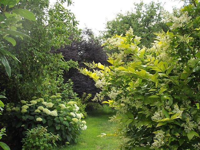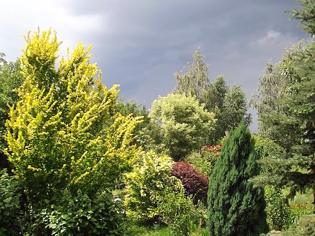 Ewo, patrzę na Twoje drzewa, krzewy i całą resztę zazdroszcząc....ograniczyliśmy się do iglaków z lenistwa i teraz brakuje mi rozmachu i przepychu, które nadają bogactwo barw, kształtów i zmienności, nawet zima pozbawione listowia ukazują różnorodność kory czy pokroju....Błąd, mozna próbować dokładać tu i tam lisciaste drzewka ale to nie załatwi sprawy. Ideału nie ma.....