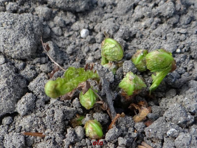 Olu , to takie skrzypowe grzybki , teraz są najładniejsze :) . Hosty takie duże , u mnie jeszcze żadna nie ma liści , dzisiaj rano było -2 a ja na podwórku przy ścianie mam te do posadzenia , niektóre już z liśćmi .