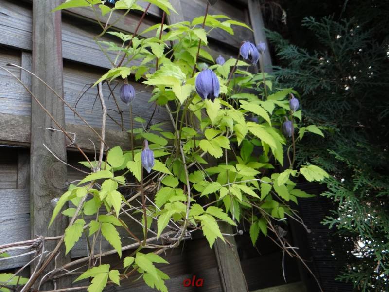 Powojnik...żółte liście , niebieskie dzwoneczki .