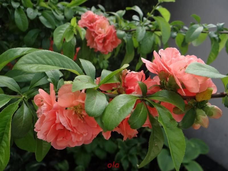 A pigwowiec wyróżnia się z tak soczystej zieleni -piękne te podwójne kwiaty a szczepiony, to już miodzik vishenka