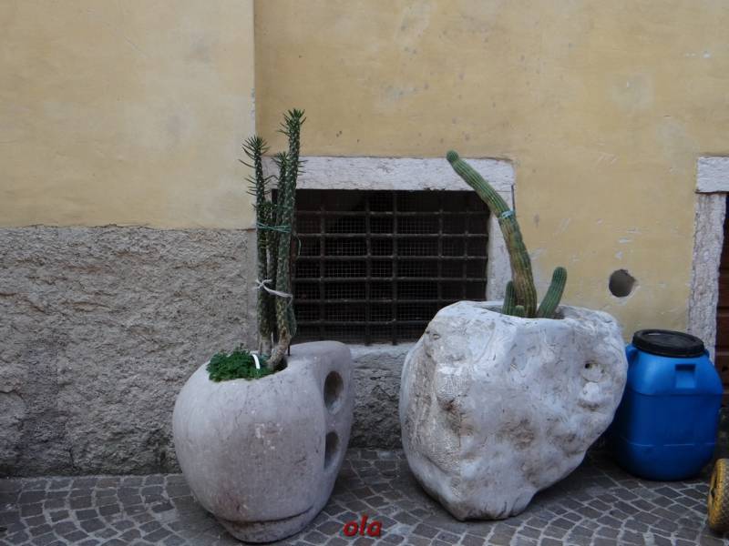 Uliczna dekoracja przy sklepie ...fajne pojemniki