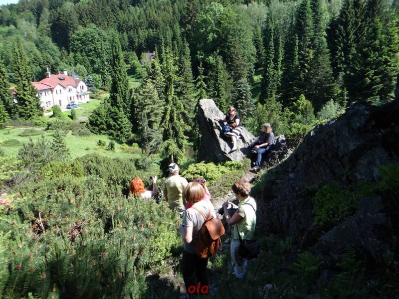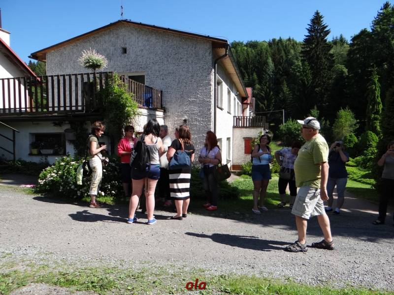 Wyjazd do Czech do Grulichowych Skałek . Właścicielce wręczyliśmy dyplomy , a śp. założycielowi chwilę zadumy przy złożonych prochach .