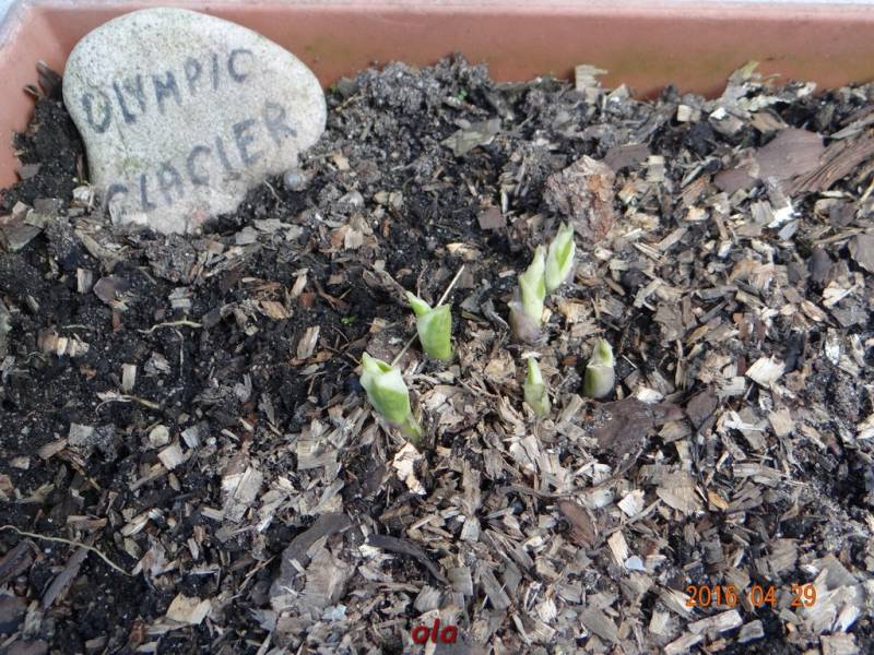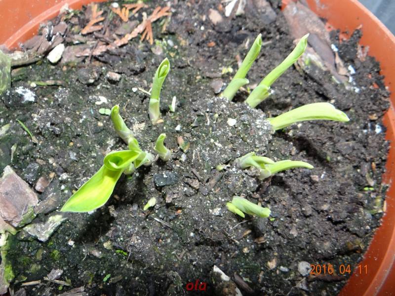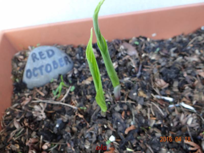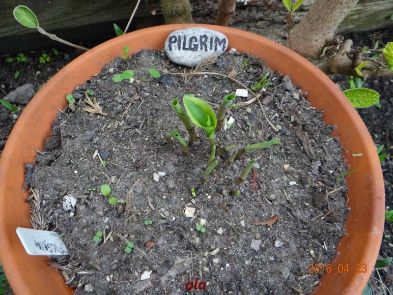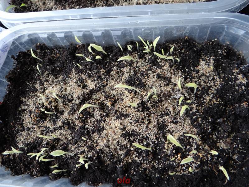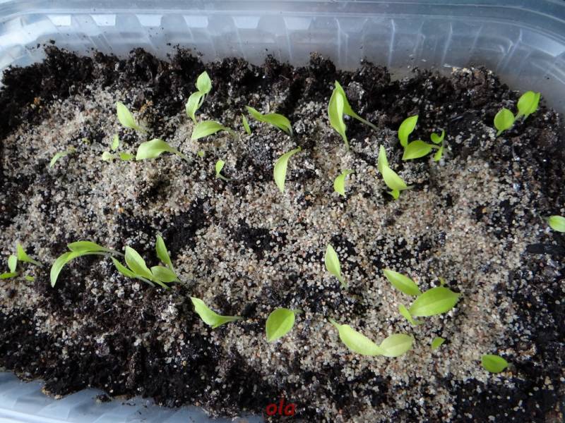 Dzisiaj mija miesiąc od wysiewu nasion host . We wytłaczankach zazieleniło się .... najoporniej idzie odmianie REVALUTION .