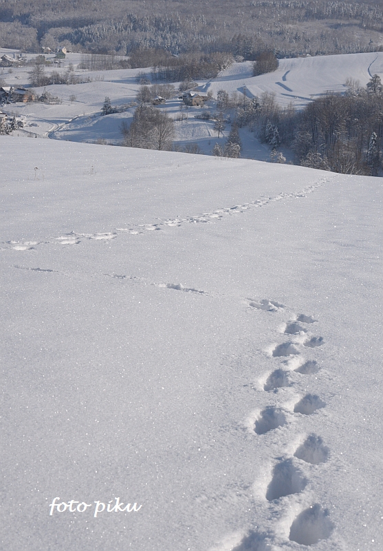 Pieseczka w takie białe i zimne coś chciałaś wyciągnąć i na zmarnowanie jego łapki narazić :silly: , a widoki cudne, uwielbiam takie krajobrazy i nawet jak nie pisuję to oglądam z przyjemnością.