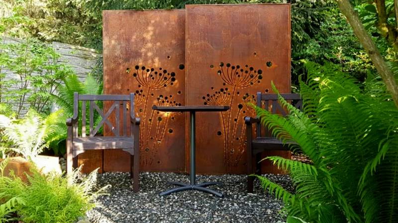 ), przyjechały... ale bez nóżek! No to pytam, a jak ja proszem państwa mam to postawić? Na jutro zdjęcia, a nóżek nie ma! Ale przywiozła Pani scenarzystka i postawilim! Panele są naprawdę świetne! Stal jest gruba, a poza tym korten nie rdzewieje tylko patynuje, więc nawet jak mi obrzydną to będą tam stały i już.