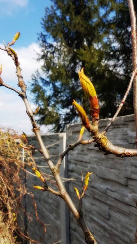 Właśnie zwróciłam uwagę M., że te pędy horki, które w słońcu się znalazły to mają jakieś pączki... ale listków...