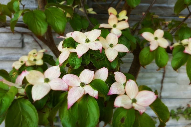 klonik w towarzystwie derenia kanadyjskiego (to ten rosnący pod spodem, pięknie kwitnie!)