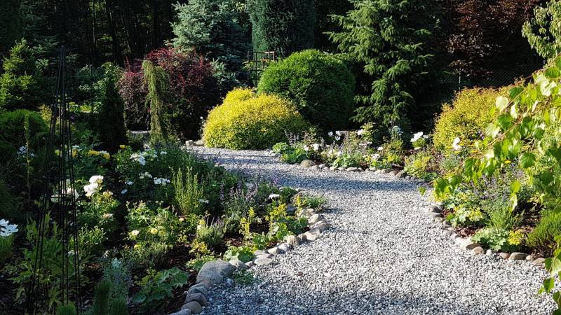 Edytko z tym żwirkiem to się sprawa nieco komplikuje. U siebie wysypywałam najpierw żwirkiem drobnym i dość grubo, faktycznie po przejściu robiły się ślady i nogi jakby się zapadały? Wraz z powstawaniem nowych ścieżek, pan który mi ten żwirek dostarcza, przywiózł mi żwirek nieco grubszy. Kiedy rozgrabiłam cieniej ten drobny i dosypałam ten grubszy ścieżka zrobiła się stabilniejsza. Żwirek o różnej gradacji się chyba bardziej klinuje. Owszem chrzęści pod nogami, ale nie robią się już dziury. Kiedyś miałam grubszą warstwę, teraz to może jakieś max 5 cm. Teraz chodzi mi się lepiej