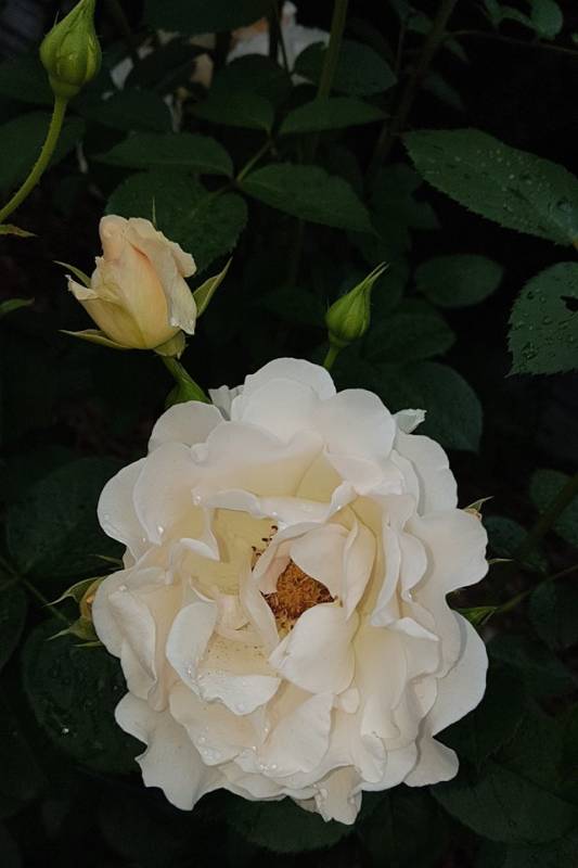 Keros jest u mnie od wiosny, sadzony z gołym korzeniem, więc na razie jest malusieńki. Kupiony we Floribundzie. To Róża Harknessa, podają rozmiar 0,7 - 1,0 m, zdrowotność na 5 gwiazdek i zimotrwałość na 4. Z moich obserwacji wynika, że faktycznie liście ma bardzo zdrowe, nawet lepsze niż Pastella, która przecież jest niezwykle wytrzymała, a już łapie jakieś plamy na dolnych liściach. Oczywiście kwiaty ma zupełne inne niż Pastella, ale mnie zachwycają. Na początku pręciki są żółte, przekwitając robią się brązowe? czarne? - w każdym razie ciemne.