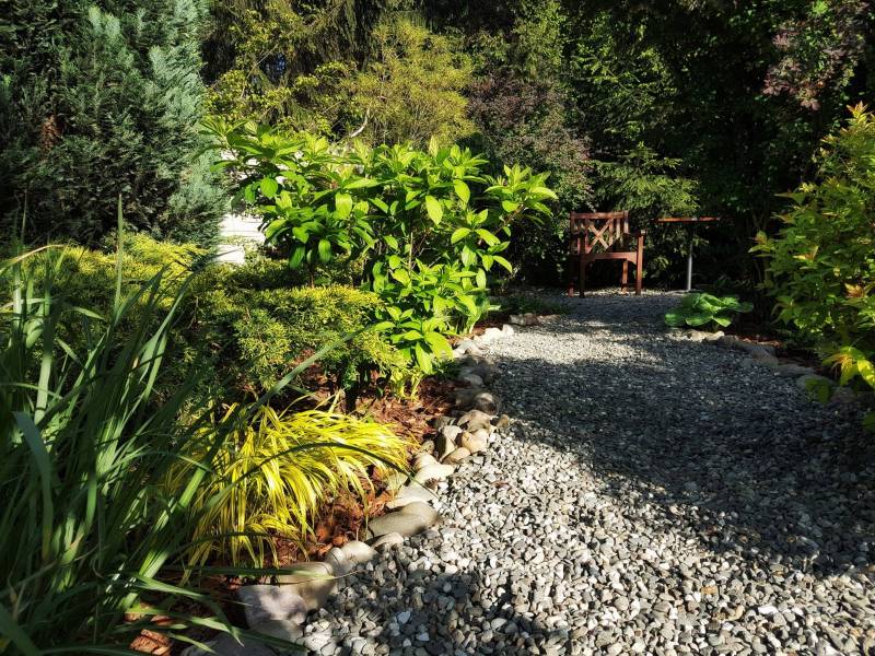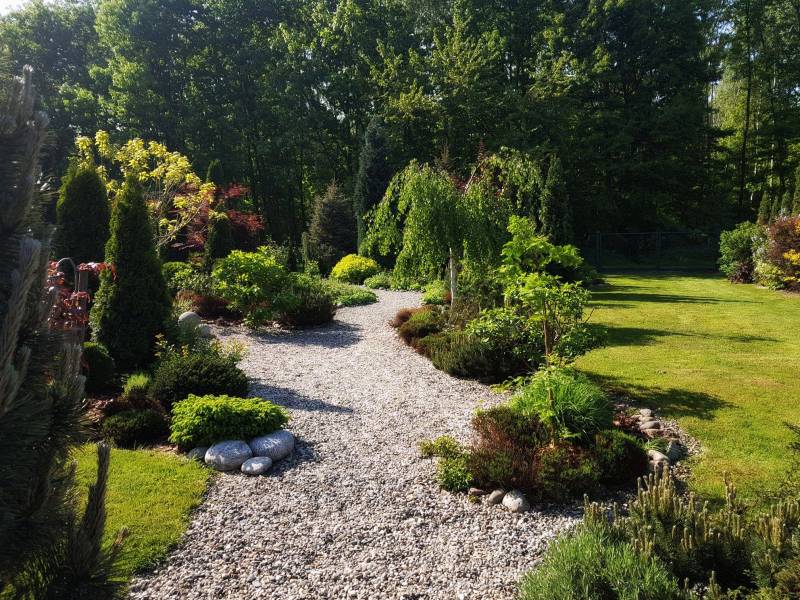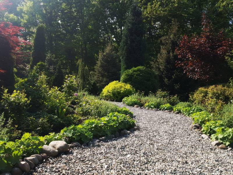 Kamienne ścieżki wśród kwiecistych rabat