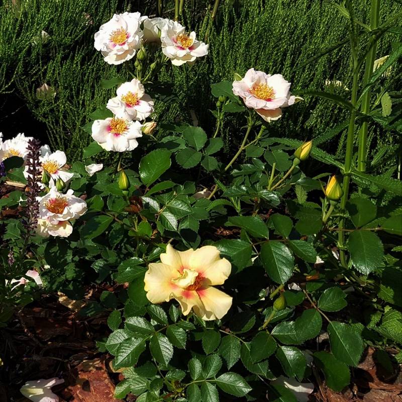 Właśnie, a propos róż - wiosną zrobiłam zamówienie w Rosa plant. Zamówiłam po 3 sztuki Home run, Pink Home Run, 2 Eye for You (bo w floribindzie ostała jedna) i Fighting Timeraire, która z jednego marnego patyczka nie puściła żadnego listka. Zamiast Pink home run i Eye for you przyszło nie wiem co. Kwiat zgodny jedynie w Home run.