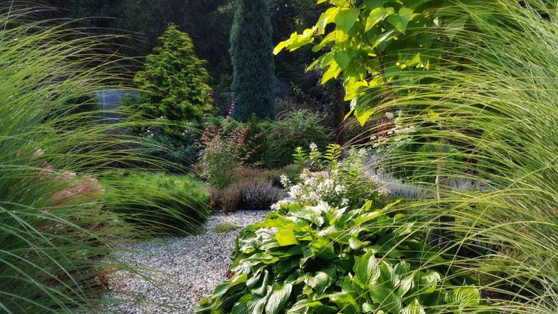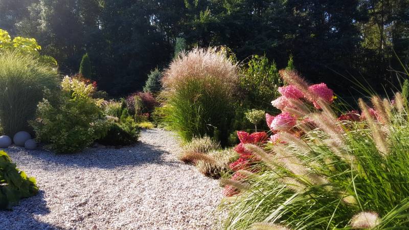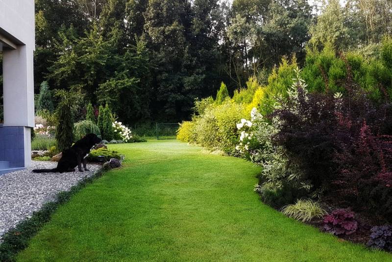 Jednak nie da się ukryć, był taki okres w moim życiu kiedy nawet martensy i bojówki nosiłam różowe, stąd też tyle tego różu u mnie. Teraz próbuję to jakoś złagodzić i ugłaskać, stonować, właśnie tworząc obwódki rabat. Niebieskościami i seledynowo żółtymi przywrotnikami. I choć skłaniam się w kierunku ogrodu w stylu naturalistycznym, to jednak bardzo lubię powtarzalność elementów i wielu egzemplarzy tych samych roślin. Duszy kolekcjonera raczej nie posiadam.