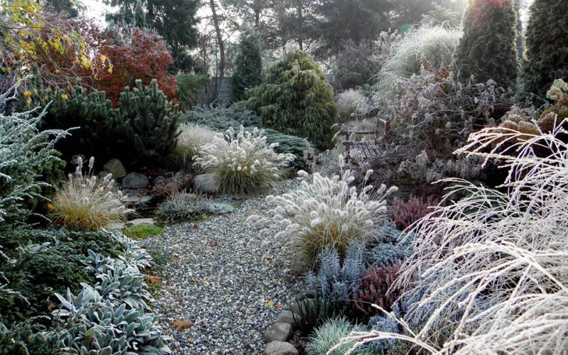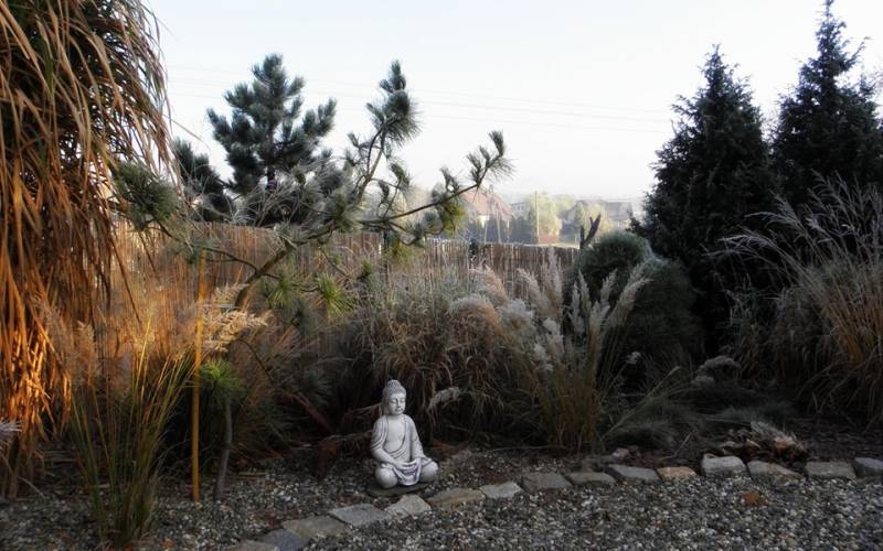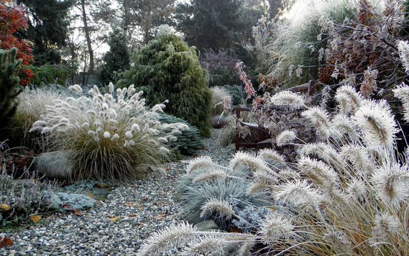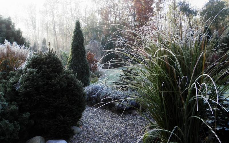 Trawy zaplotłam w lecie - ale tylko prosa i miskanty z serii "miękkie" czyli gracillimus i morning light, inne już w lecie były zbyt twarde, a co dopiero teraz. Jak mi czasu starczy i pogoda dopisze to może wreszcie w sobotę pozwiązuję resztę traw, ale tak zwyczajnie sznurkiem. Rozplenicom daję spokój, u mnie aż tak bardzo się nie siały.