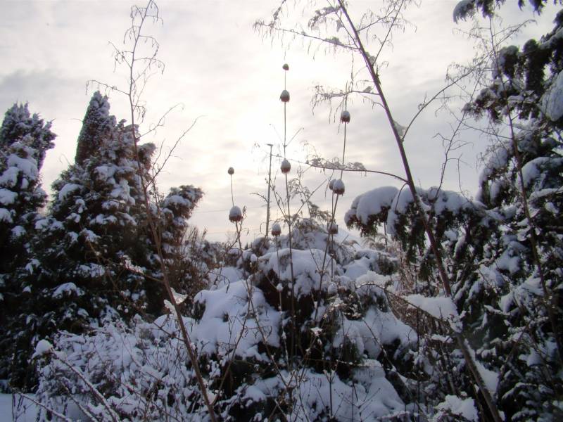 Gdybyś się zgadała z Firletką co do spotkania w okolicach Warszawy, to zapraszam Was obie na spotkanie. Biały stroik z podświetlonymi czosnkami cudny, a zimowy ogród magiczny. Jak można nie lubić zimy..? U mnie biało i mrozek.