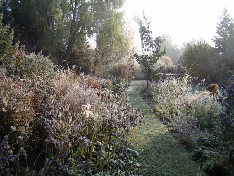dzisiaj przeszłam po rabatach, leżakować można w środku rabaty przy świerkach, w kilku miejscach zresztą, zawsze miałam problem z plewieniem w gęstwinie a teraz łyse polany. Obok zalanych korytarzy są nowe, na m2 po 3-4 wyloty, łudziłam się, że trochę zwolniły norniki ale nie. W tej sytuacji myśl mnie zaatakowała, co zastanę po zimie