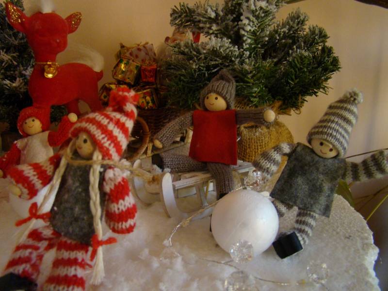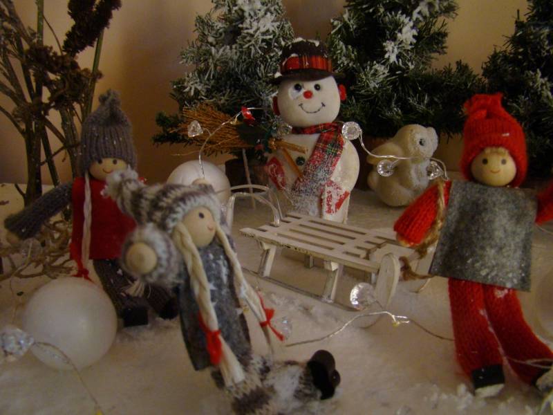 Bawię się, dokupuję co chwilę jakieś detaliki, np. te saneczki dla dzieciaczków, kupiłam też mini bombeczki na choineczki, jeszcze nie pokazywałam, chyba jeszcze na 2-3 skuszę się, choc byłam w szoku ile takie maciupeńkie bombki kosztują