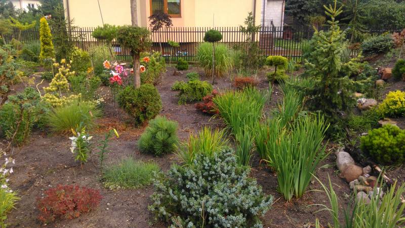 Sosny, magnolie i kamień polny....ogród zwyczajny. |