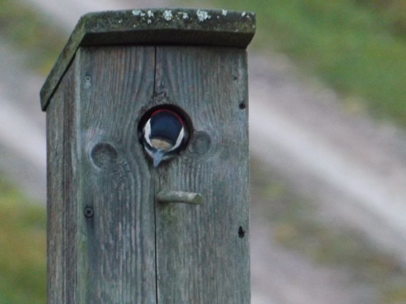 To na zimę się tam dzięcioł chowa? Traktuje budkę jako schronienie?