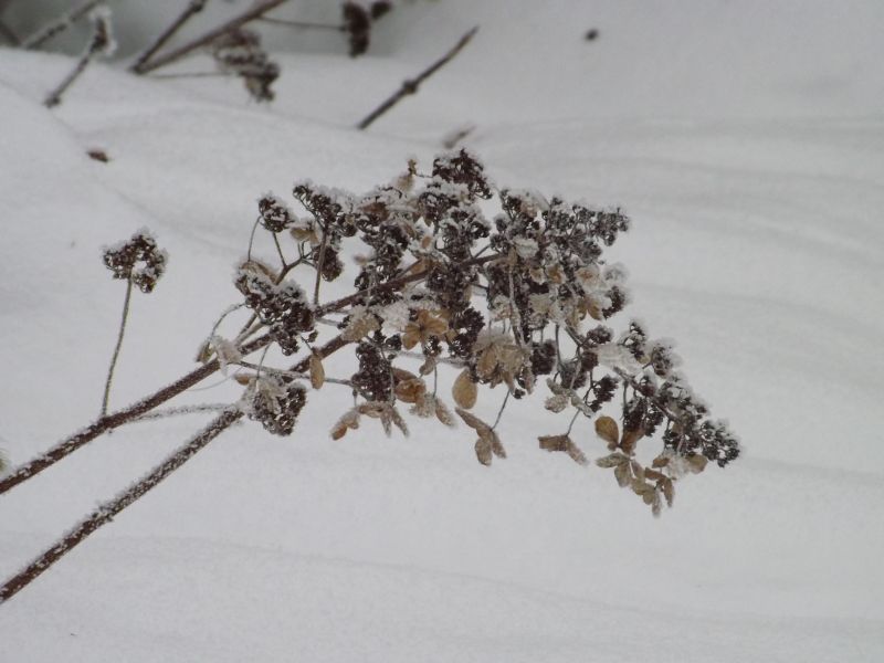 O rety! Berberysik w stanie mrożonkowym przepiękny! U nas jakieś 5-7 cm śniegu. Mogłoby być więcej, bo po tych suchych miesiącach letnich deficyt wody w glebie jest spory.