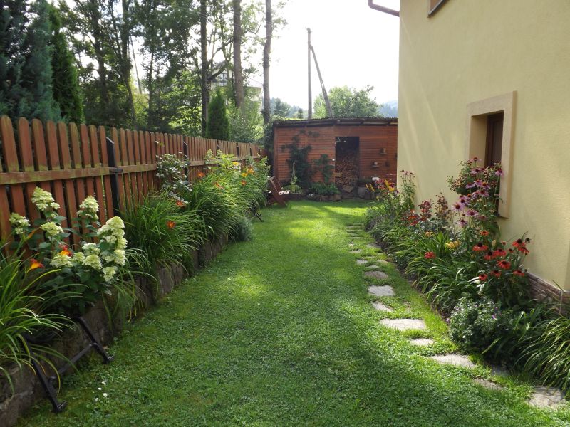Pnąca róża na domku to zawsze dobry pomysł :) A mnie by jeszcze kusiło poszerzenie tego paska pod płotem vis a vis domu :lol: Chyba, że tam ze względów logistycznych musi być szerokie przejście.