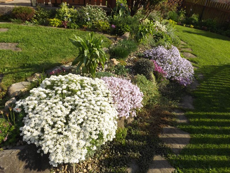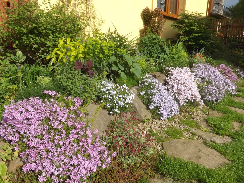 Pogoda wreszcie dopisała nie padało i popołudniu nawet ładnie świeciło słonko więc udało mi się wykosić trawnik .Do słoneczka robi się coraz bardziej kolorowo ,kwiatuszki rozkwitają ,na razie najbardziej szaleją floksy i skalniaczkowe roślinki .Kilka fotek z życzeniami miłego weekendu ja idę do pracy choć M mówi że na bal wink-3