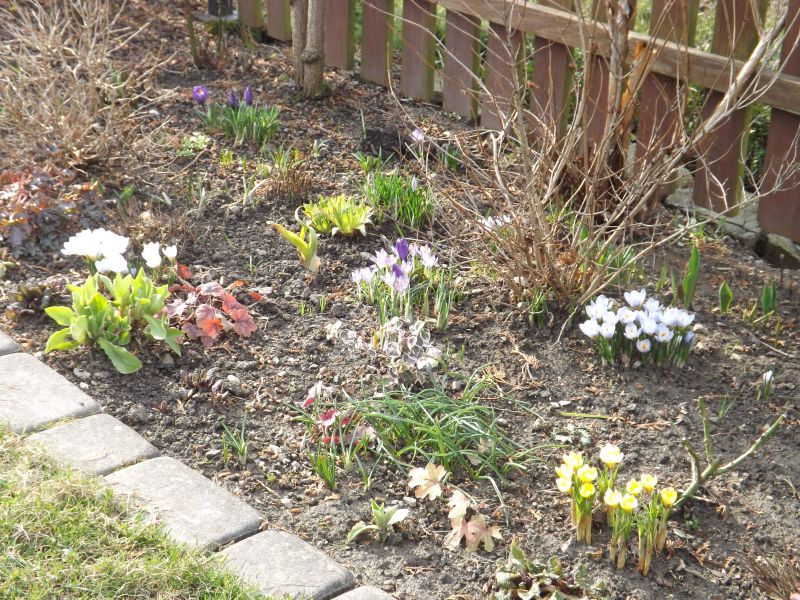 Rabatki pełne kolorów, tyle wilgoci masz w ziemi? dobrze z jednej strony ale gdy trudno wejść do ogródka to juz nie tak dobrze....zapowiadają słońce i wyzsze temperatury, u mnie noca byl przymrozek, w dzien wiatr lodowaty....brrrrr