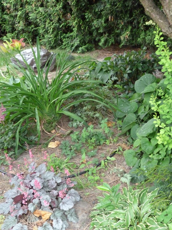 Od razu wykorzystałam okazję i wyrównałam trawnik przy okrągłej rabacie przy tarasie.
