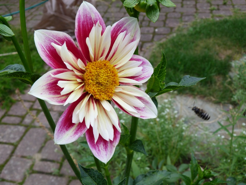 Ta dalia nie ma juz prawie w ogóle liści, a kwiaty chyba będa zasychały