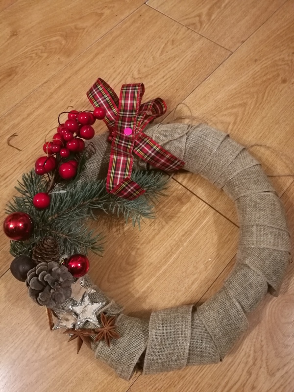Wiesiu, szyszki do wianków przyklejam na klej na gorąco. Trochę to uciązliwe, bo klej wycieka, trzeba sie spieszyć, wczoraj oparzyłam się z tego pośpiechu. Ale mimo wszystko lubię to robić