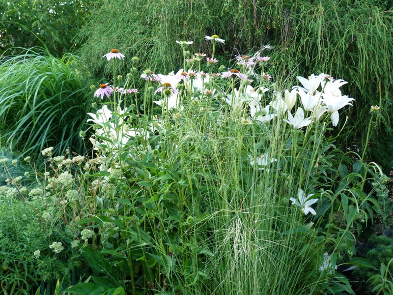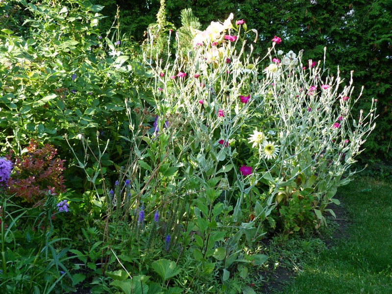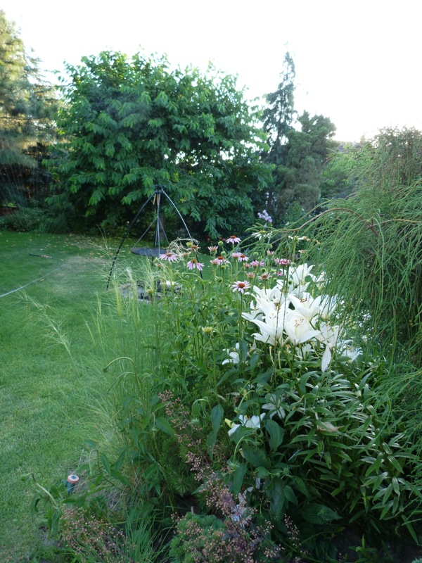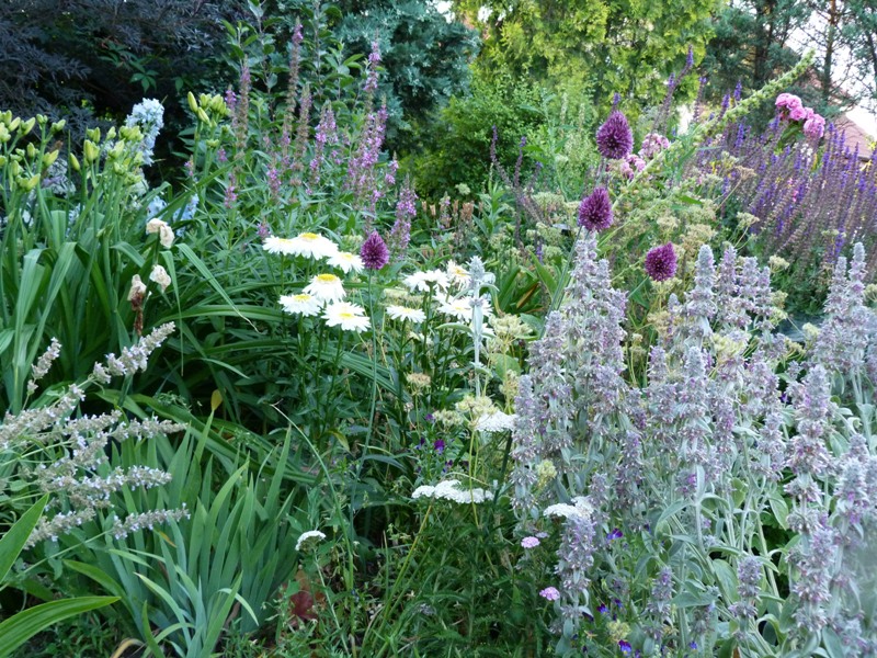 Na razie mój ogród boryka się z suszą. staram się nie podlewać nadmiernie, żeby nie wyczerpywać wody ze studni. Stan wód jest zatrważający. W związku z tym najbardziej ucierpiała rabat przy ścieżce.