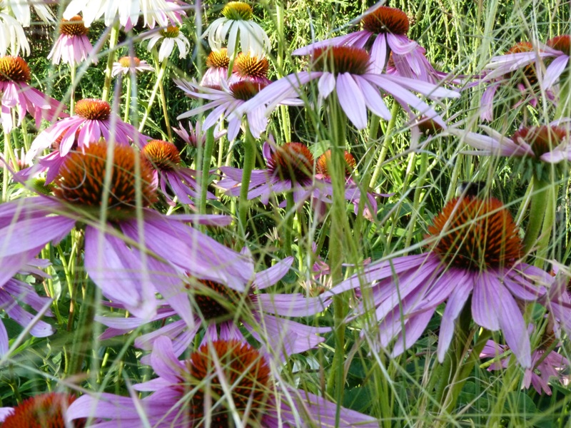 Nowinko, jestem trochę zawiedziona w tym roku jeżówkami, bo już zaczynają wyglądać źle. Przekwitają, widać, że susza dała im się we znaki. Nie pamiętam jak to było w zeszłym roku, ale wydawało mi sie, że cieszyłam się nimi nieco dłużej.