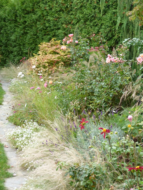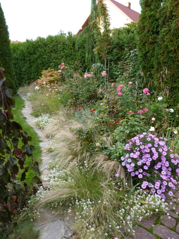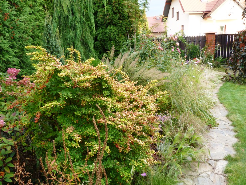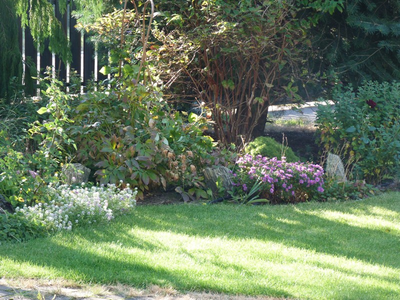 Przesadziłam tylko piwonię. Może kwiaty pozostałych będa lepiej wyglądały na tle ciemnej zieleni?