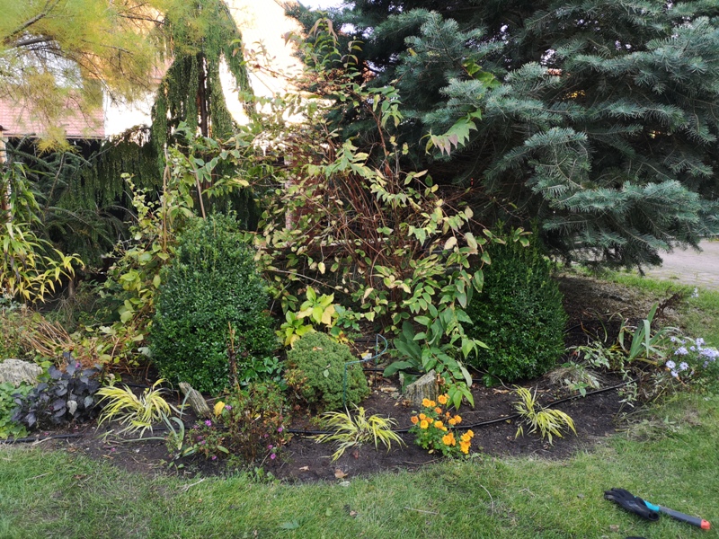 Musiałam wysadzić bukszpany z tamtej rabaty przy furtce, bo zdecydowanie było tam za ciasno. Inne rośliny się przy nich męczyły. Teraz liczę na to, że róże złapią oddech i będą lepiej kwitły.