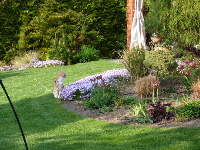 Liczę na to, że w przyszłym roku już nie będzie musiał być na uwięzi. Chociaż obawiam się, że jednak już w tym roku trzeba będzie go uwolnić, bo właśnie byliśmy u weta. Chyba naciągnął sobie szelkami nogę.