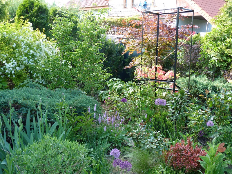 Początek maja u Ciebie jak u mnie początek czerwca, z tym że rosliny dopiero uruchamiają dodatkowe pąki. Miło pospacerować. Ładnie! Masz więcej radości z ogrodu zwyc