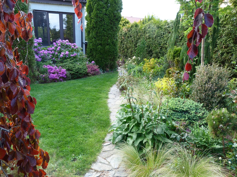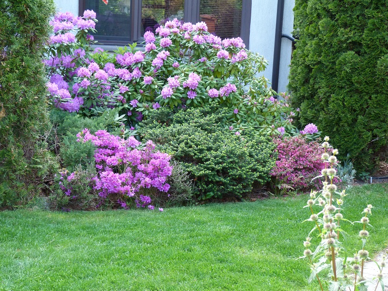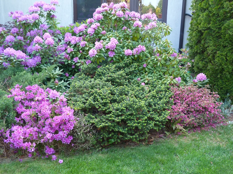 Piękna ta kompozycja z różanecznikami na tle domu. :kocham