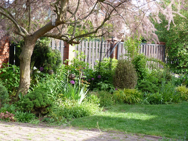 Gosia cudnie kwitnie tamaryszek i wszystkie kwasoluby :kocham :kocham trawniczek ślicznie wykancikowany :bravo :bravo u mnie ni ma szans bo jak zrobię kanciki tu gdzie nie ma kostki to zaraz w tę lukę cos wsadzam 2smiech 2smiech