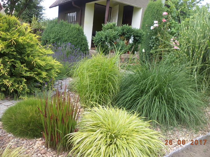 trawy i parę małych iglaczków.